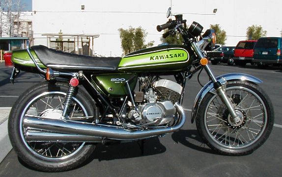 BB. Kawasaki H1D Mach 3. ex Ins Tender. Dam good bike these D models, not far behind my H2. Never let Chicks on the front, Val bounced us off the barrier fence turning into Cambridge Rd. |
